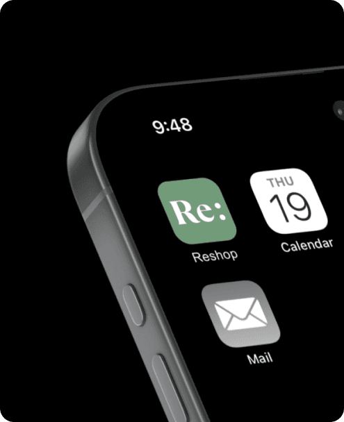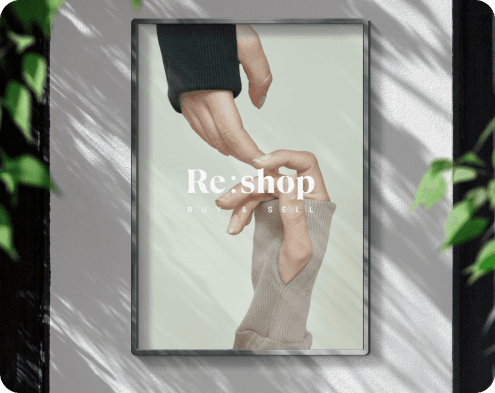 The name Re: shop refers to re-selling and re-buying. I designed a logo to appeal emotionally and chose color schemes with green neutrals that implicated nature.