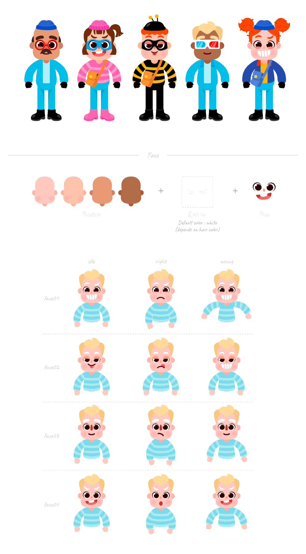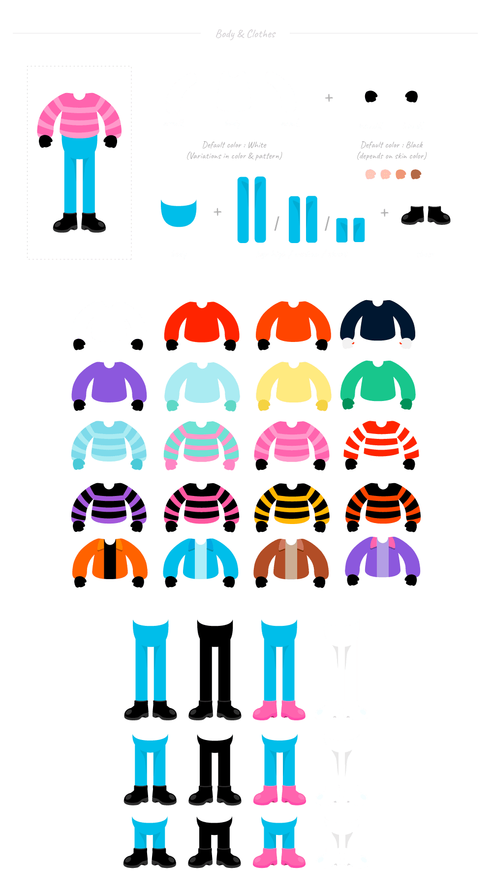 I designed a modular avatar system to maximize production efficiency while ensuring variety. By creating interchangeable parts—such as faces, expressions, and outfits—I established a workflow that generates countless unique suspects with minimal resources, providing a fresh gameplay experience every time.