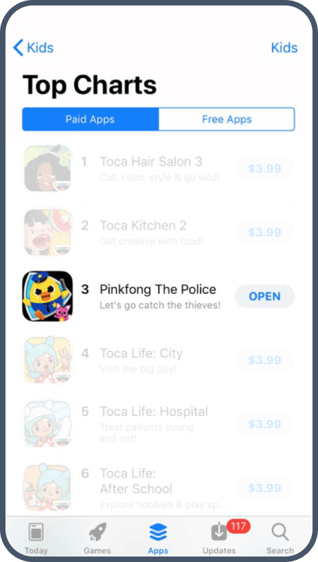 Despite being our first paid app project, the game was featured as "App of the Day" on the App Store upon launch. It successfully reached No. 1 in the Top Paid Games chart, demonstrating strong market resonance. This achievement validated my data-driven approach—from strategic IP development to efficient system design—as a key driver for commercial success in a competitive global market.