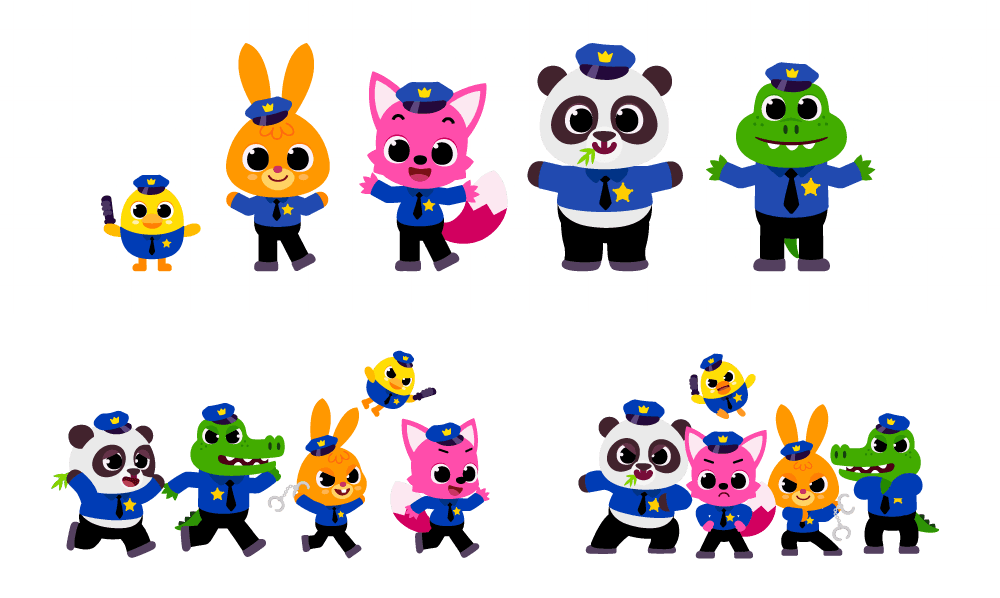I developed a new lineup of "Pinkfong Friends" IP to expand our global reach. Based on user research, I strategically designed characters—including a Panda for the Chinese market and a Rabbit/Crocodile for the 3-6 age group—to ensure global product-market fit.
